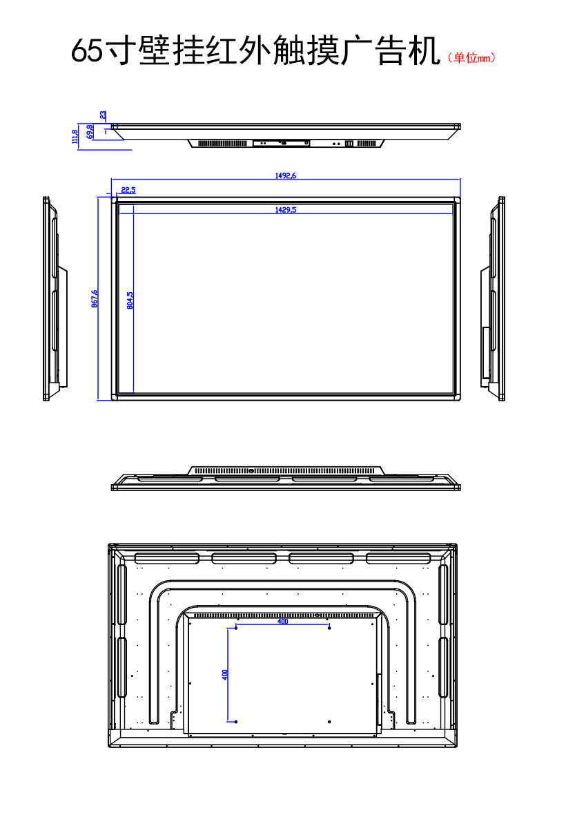 65寸紅外觸控壁掛廣告機